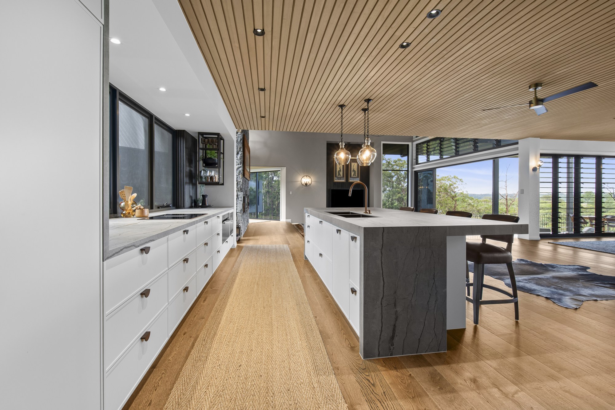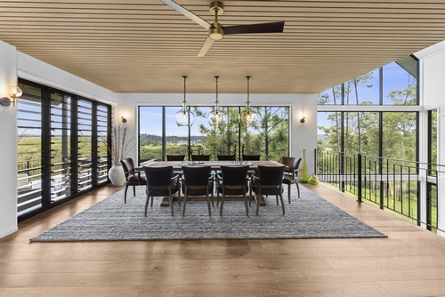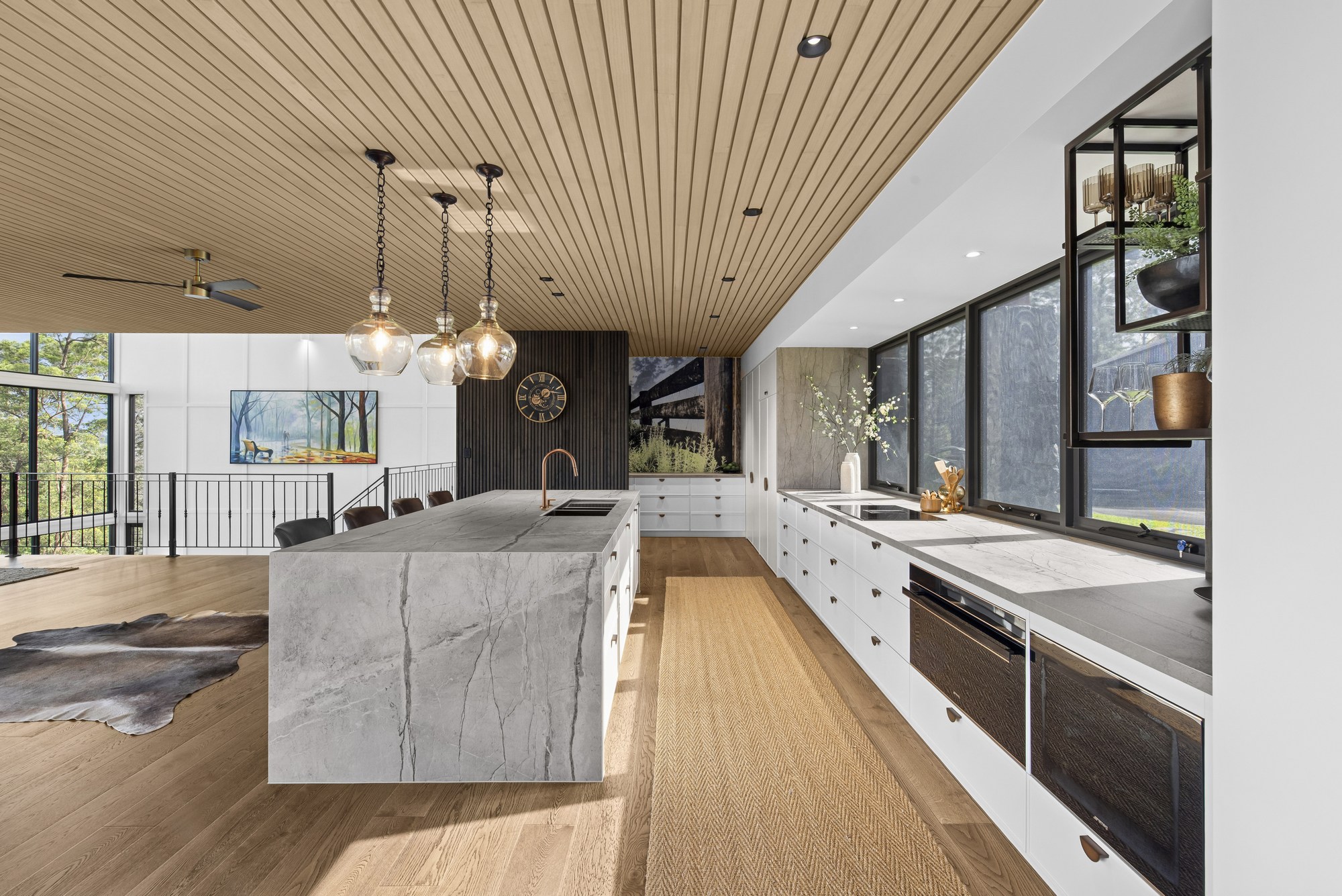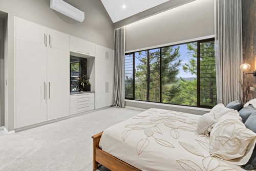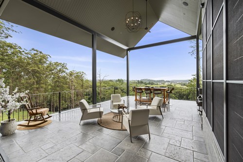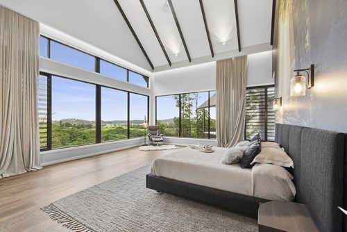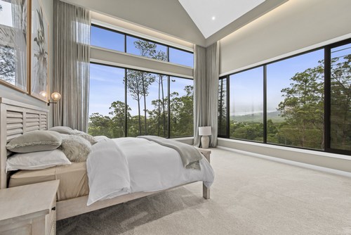 Sitting high in Bayview Heights, and as the name suggests, this newly built home has made good use out of our bi-fold doors, louvred windows and glass balustrading.