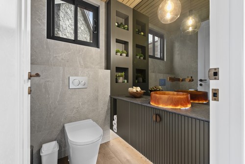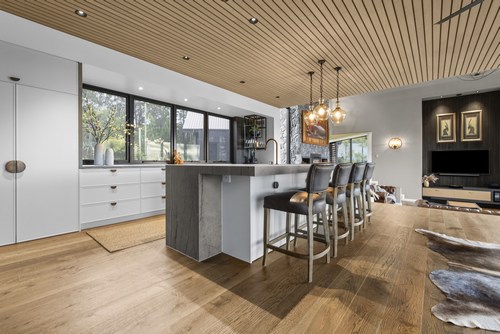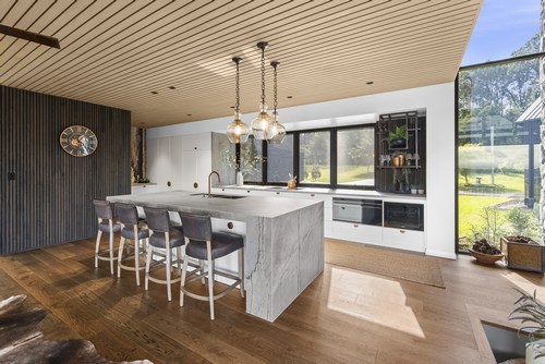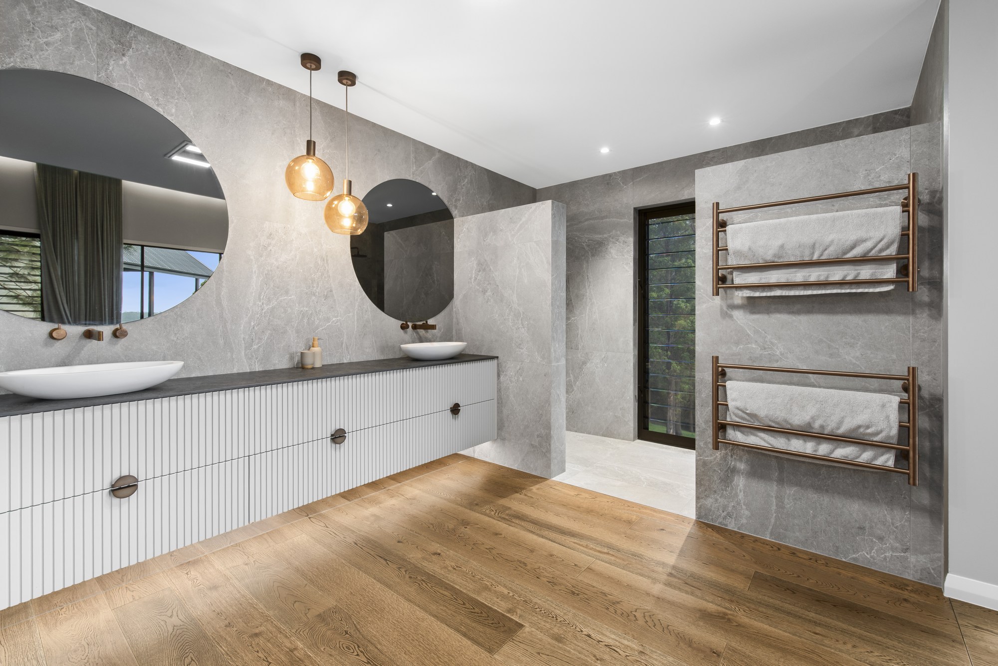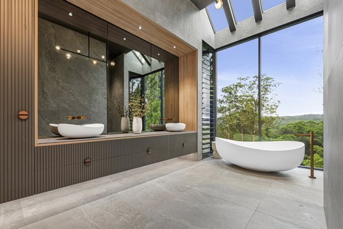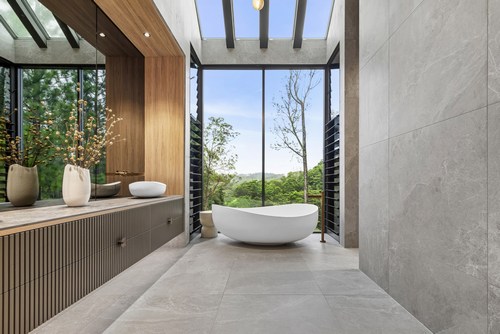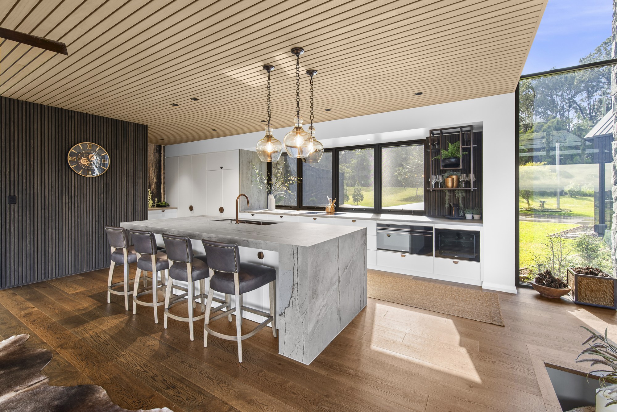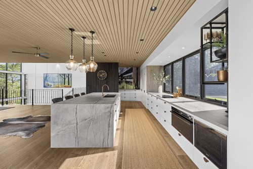 Sitting high in Bayview Heights, and as the name suggests, this newly built home has made good use out of our bi-fold doors, louvred windows and glass balustrading.